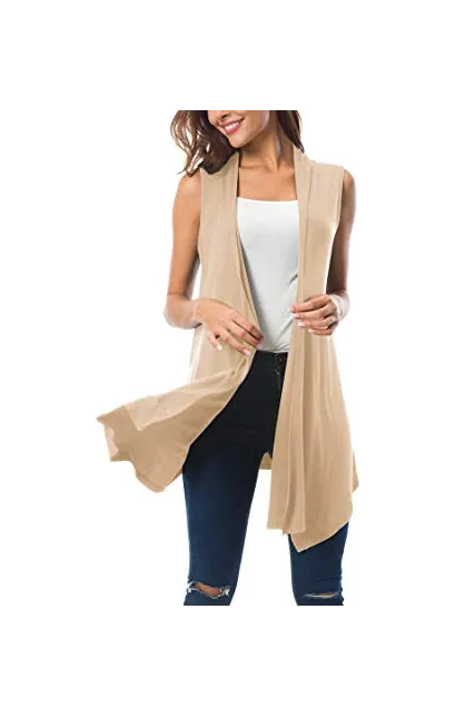 - A silhouette-of-the-season for Urban CoCo,the designer creates a sleeveless rendition of the favoured comfortable shawl lapel cardigan vest.Trendy and elegant item which is suitable for any occasions,office,summer vacation,beach or just casual wear