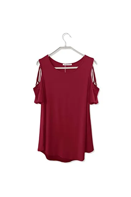 - Soft,lightweight fabric made and comfortable to wear.Design with scoop neck,strappy details within the cold shoulder and chic high-low cut.Unique and stylish design