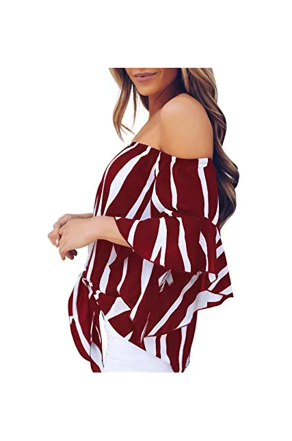 - Loose Fit design can cover all body shapes,Show your beauty in dressing Asvivid Off the Shoulder Striped Blouses Tops!