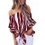 Asvivid Women's Striped Off Shoulder Bell Sleeve Shirt Tie Knot Casual Blouses Tops