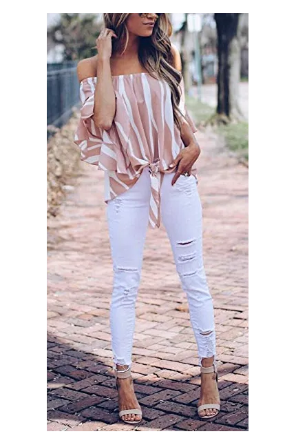 - Loose Fit design can cover all body shapes,Show your beauty in dressing Asvivid Off the Shoulder Striped Blouses Tops!