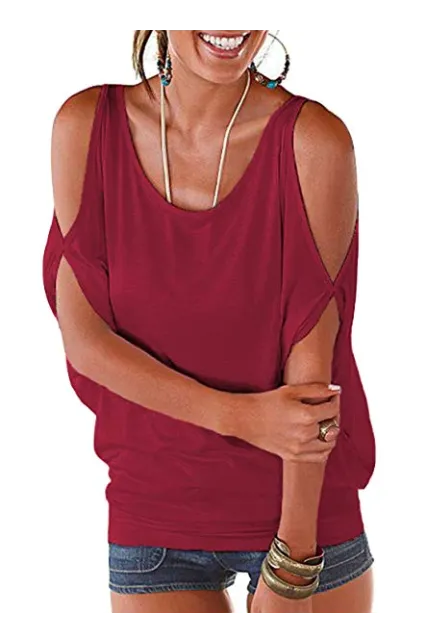 - Cold shoulder,dolman short sleeve