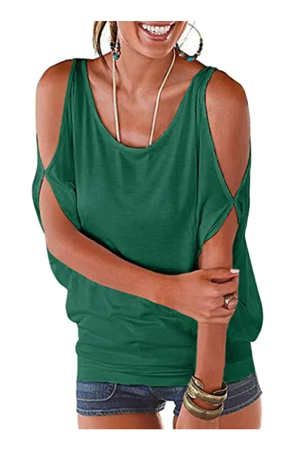 - Cold shoulder,dolman short sleeve