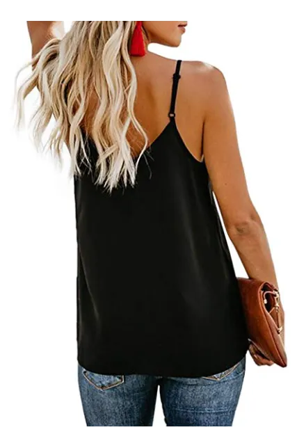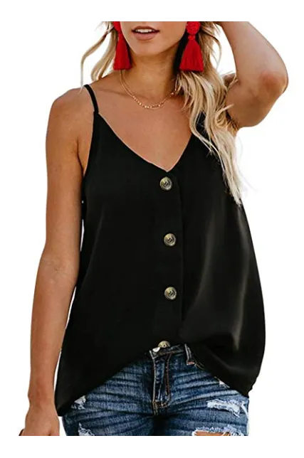 - Feature: Sexy V Neck Sleeveless, Button Down, Loose Fit, Adjustable Spaghetti Strap, Solid Color Design