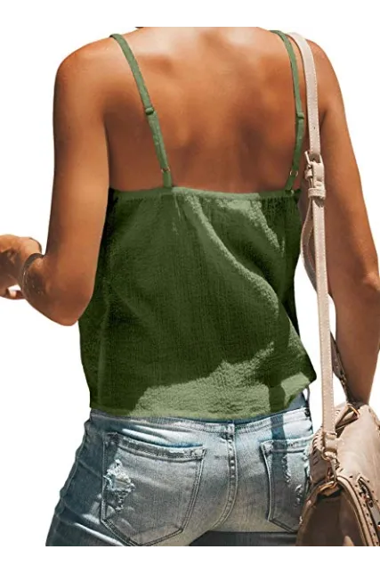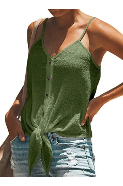 - Feature: Sexy V Neck Sleeveless, Tie Knot Front, Button Down, Loose Fit, Adjustable Spaghetti Strap, Solid Color Design