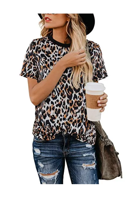 - The short sleeve shirt for women,has fashionable leopard print ,crew neck,is a basic t shirt for your summer time .