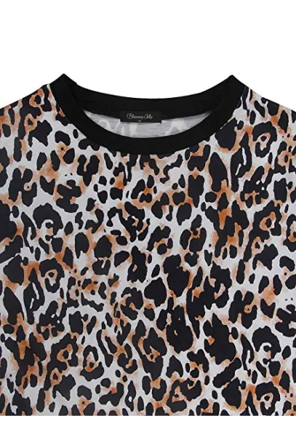 - The short sleeve shirt for women,has fashionable leopard print ,crew neck,is a basic t shirt for your summer time .