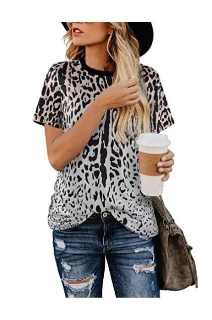 - The short sleeve shirt for women,has fashionable leopard print ,crew neck,is a basic t shirt for your summer time .