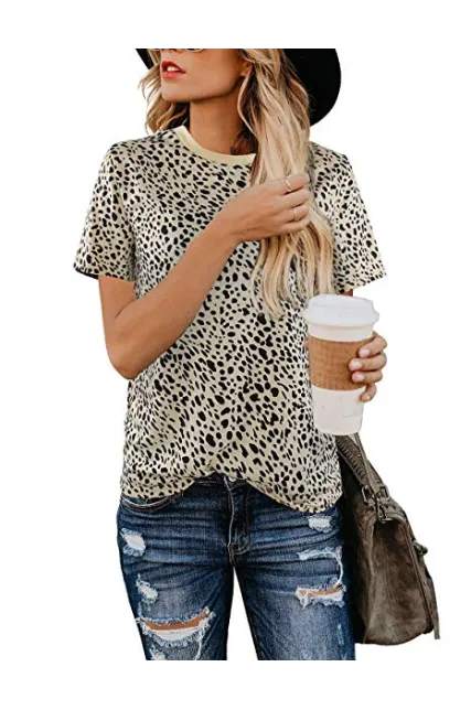 - The short sleeve shirt for women,has fashionable leopard print ,crew neck,is a basic t shirt for your summer time .