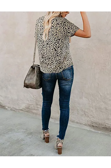 - The short sleeve shirt for women,has fashionable leopard print ,crew neck,is a basic t shirt for your summer time .
