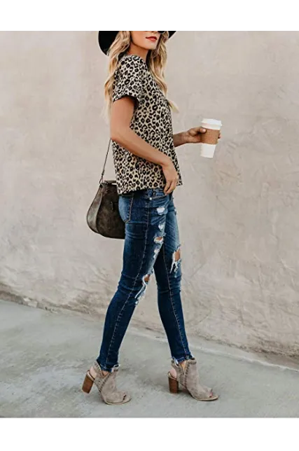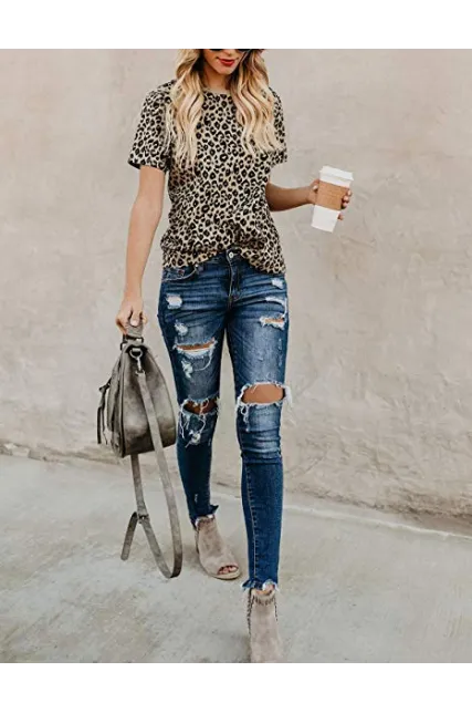 - The short sleeve shirt for women,has fashionable leopard print ,crew neck,is a basic t shirt for your summer time .