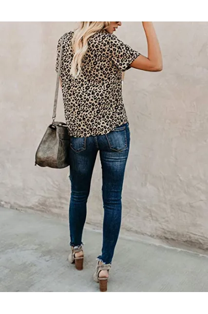 - The short sleeve shirt for women,has fashionable leopard print ,crew neck,is a basic t shirt for your summer time .
