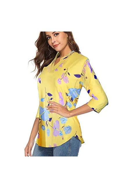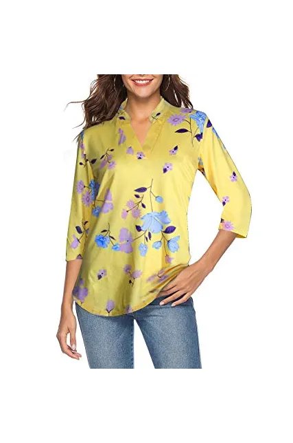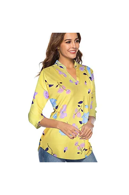 - Loose fit tunic Features Paisley Bohemia pattern design / Floral print pattern / Short sleeve / V neck /High quality fabric/Flowy bottom hem