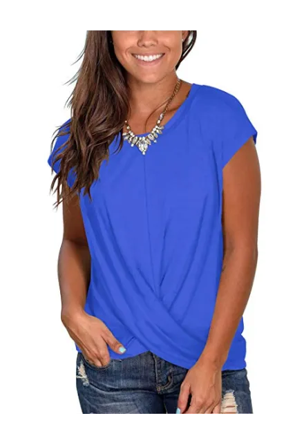 - Basic tees - This womens top features short sleeves, crew neckline and a twist in the front, a good choice to upgrade your plain and basic shirt.