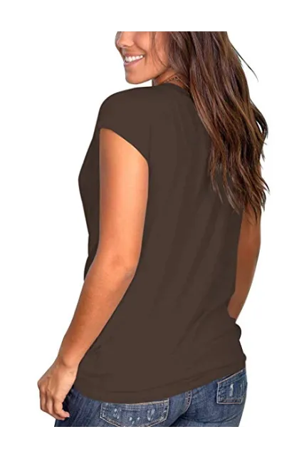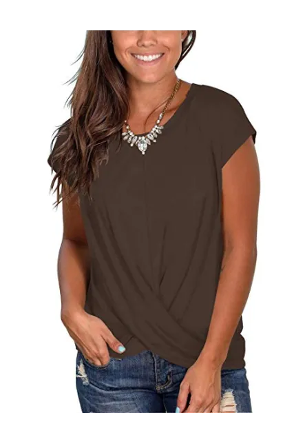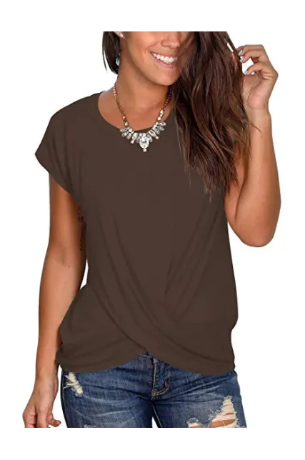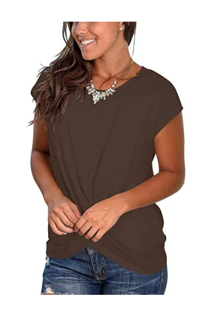 - Basic tees - This womens top features short sleeves, crew neckline and a twist in the front, a good choice to upgrade your plain and basic shirt.
