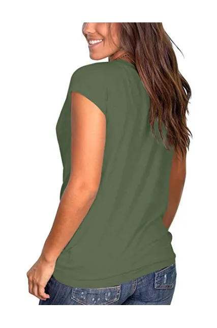 - Basic tees - This womens top features short sleeves, crew neckline and a twist in the front, a good choice to upgrade your plain and basic shirt.