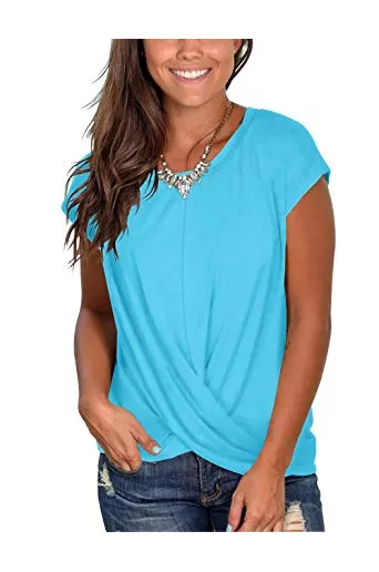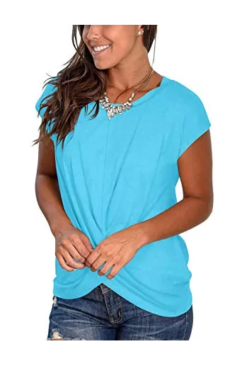 - Basic tees - This womens top features short sleeves, crew neckline and a twist in the front, a good choice to upgrade your plain and basic shirt.