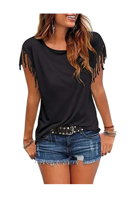 - 【Casual style】Everyone will want to catch a glimpse of you in this Tassel Short Sleeve Round Neck T-Shirt Top