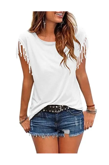 - 【Casual style】Everyone will want to catch a glimpse of you in this Tassel Short Sleeve Round Neck T-Shirt Top