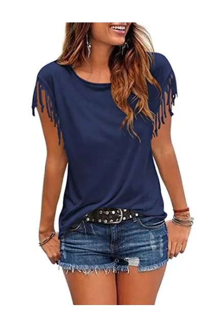 - 【Casual style】Everyone will want to catch a glimpse of you in this Tassel Short Sleeve Round Neck T-Shirt Top