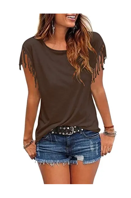 - 【Casual style】Everyone will want to catch a glimpse of you in this Tassel Short Sleeve Round Neck T Shirt Top