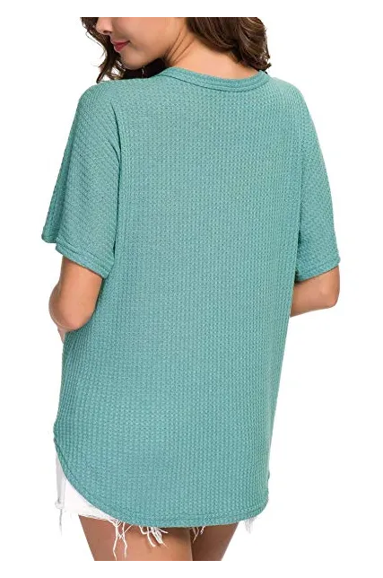- The waffle knit tunic blouses has a Sexy V Neck and short sleeve shirts with button down design.You can weat it as summer henley blouses,tie knot tops, button down t shirts ,Beach shirts! This blouses will become a staple in wardrobe and can be worn for so many different occasions, such as stay home,graduation party,go to shopping,club,beach walking,vacation,etc.