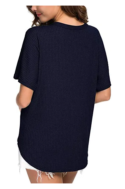 - The waffle knit tunic blouses has a Sexy V Neck and short sleeve shirts with button down design.You can weat it as summer henley blouses,tie knot tops, button down t shirts ,Beach shirts! This blouses will become a staple in wardrobe and can be worn for so many different occasions, such as stay home,graduation party,go to shopping,club,beach walking,vacation,etc.