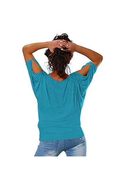 - Feature:the shirts design with ruffled up sides,summer cold shoulder t shirts for women,solid color tees tops,half batwing sleeve blouses,round neck shirts with fashion hem.