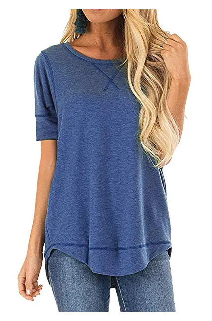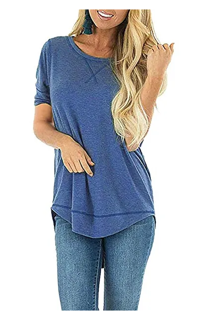 - Casual Loose Style, Short Sleeve, O Neck, Solid Color, Side Split, Long Hem, High Low Tunic Top