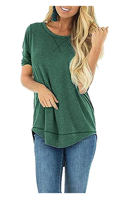 - Casual Loose Style, Short Sleeve, O Neck, Solid Color, Side Split, Long Hem Tunic Top. Not a Specialized Maternity Shirt