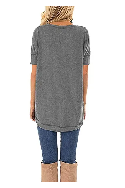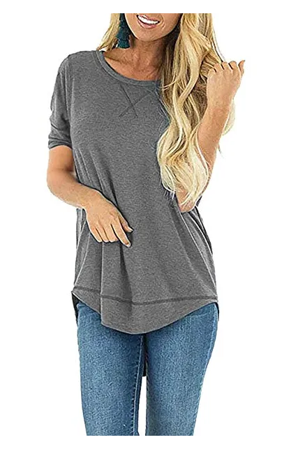 - Casual Loose Style, Short Sleeve, O Neck, Solid Color, Side Split, Long Hem Tunic Top. Not a Specialized Maternity Shirt