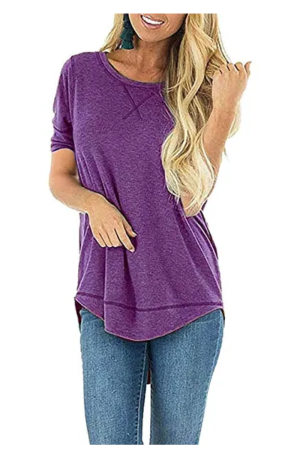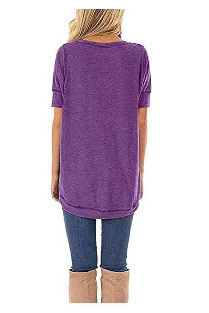 - Casual Loose Style, Short Sleeve, O Neck, Solid Color, Side Split, Long Hem, High Low Tunic Top