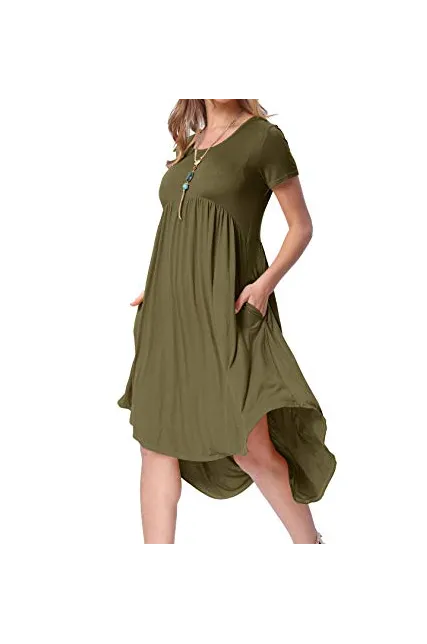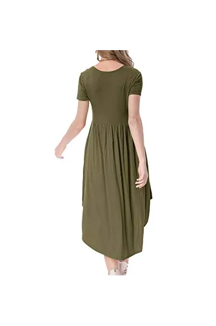 - Selling Point:High Low Hem Loose Swing Midi Dress,Scoop Neck Draped Casual Dress,Plain Flowy Party Dance Dress With Pockets,US Size.