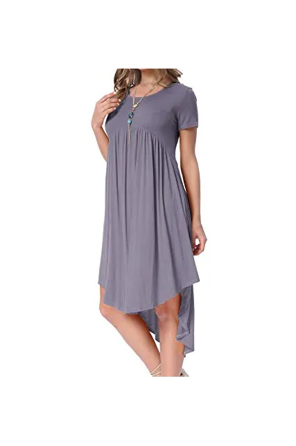 - Selling Point:High Low Hem Loose Swing Midi Dress,Scoop Neck Draped Casual Dress,Plain Flowy Party Dance Dress With Pockets,US Size.
