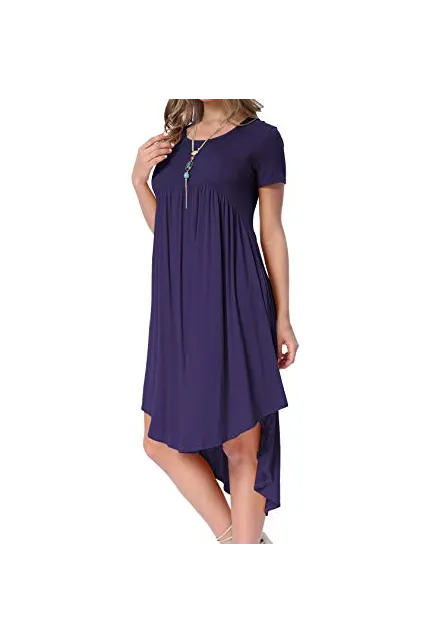 - Selling Point:High Low Hem Loose Swing Midi Dress,Scoop Neck Draped Casual Dress,Plain Flowy Party Dance Dress With Pockets,US Size.