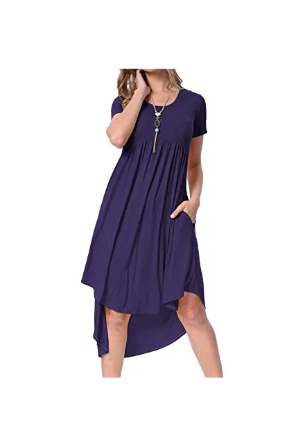 - Selling Point:High Low Hem Loose Swing Midi Dress,Scoop Neck Draped Casual Dress,Plain Flowy Party Dance Dress With Pockets,US Size.