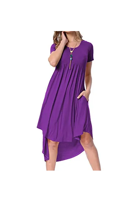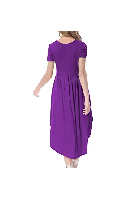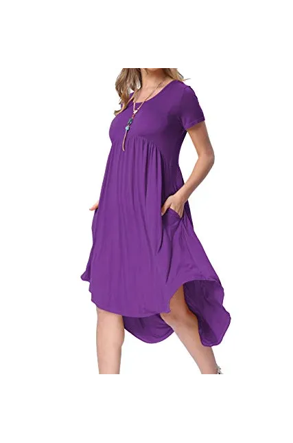 - Selling Point:High Low Hem Loose Swing Midi Dress,Scoop Neck Draped Casual Dress,Plain Flowy Party Dance Dress With Pockets,US Size.