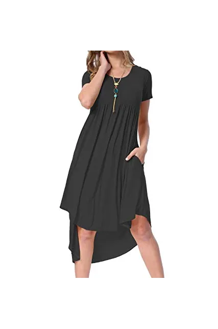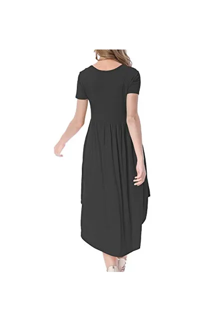 - Selling Point:High Low Hem Loose Swing Midi Dress,Scoop Neck Draped Casual Dress,Plain Flowy Party Dance Dress With Pockets,US Size.