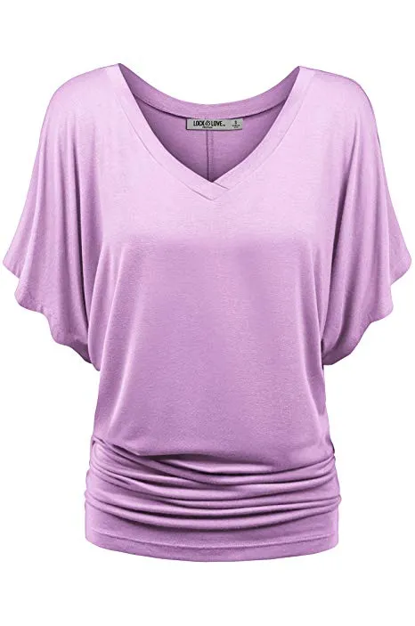 Lock and Love Women's Solid Short Sleeve Boat Crew Neck V Neck Dolman Top XS - 5XL Plus Size Made in USA