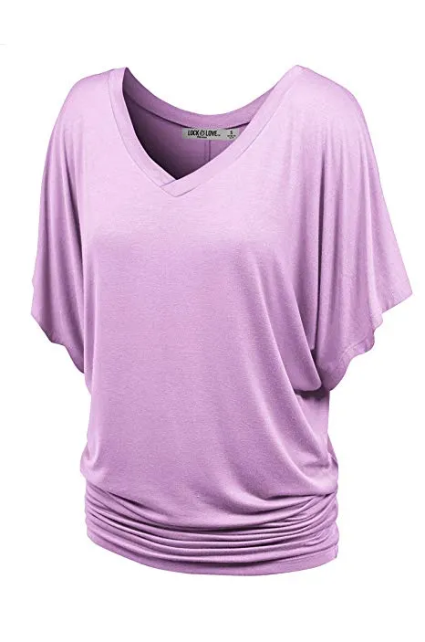 Lock and Love Women's Solid Short Sleeve Boat Crew Neck V Neck Dolman Top XS - 5XL Plus Size Made in USA