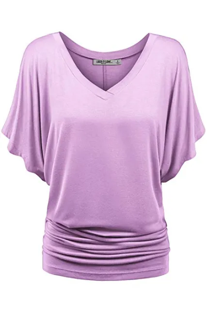 Lock and Love Women's Solid Short Sleeve Boat Crew Neck V Neck Dolman Top XS - 5XL Plus Size Made in USA