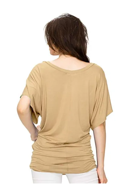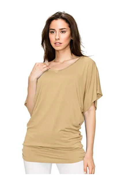 Lock and Love Women's Solid Short Sleeve Boat Crew Neck V Neck Dolman Top XS - 5XL Plus Size Made in USA