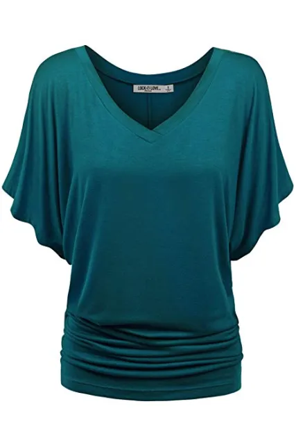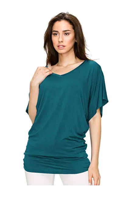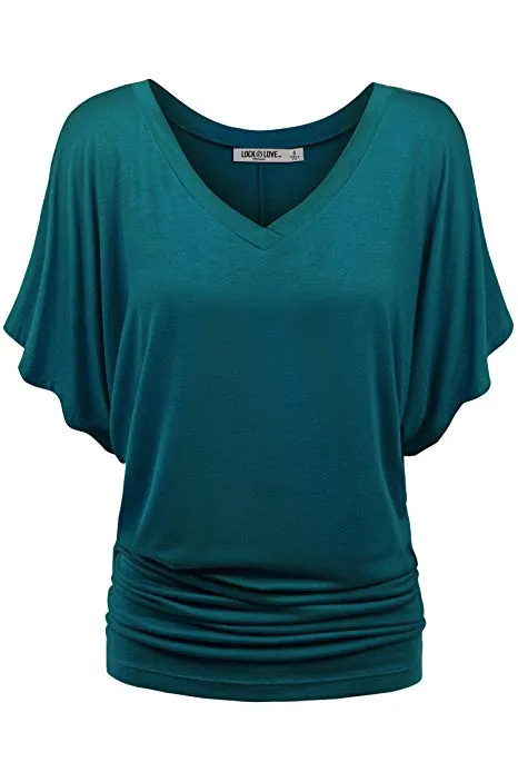 Lock and Love Women's Solid Short Sleeve Boat Crew Neck V Neck Dolman Top XS - 5XL Plus Size Made in USA