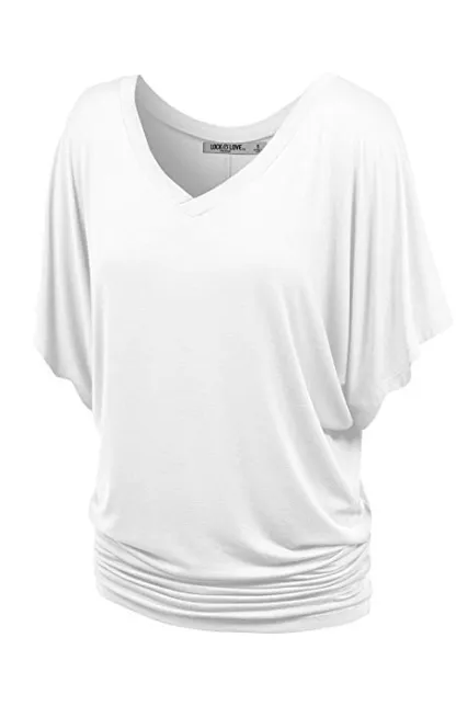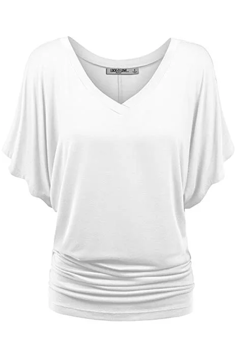 Lock and Love Women's Solid Short Sleeve Boat Crew Neck V Neck Dolman Top XS - 5XL Plus Size Made in USA