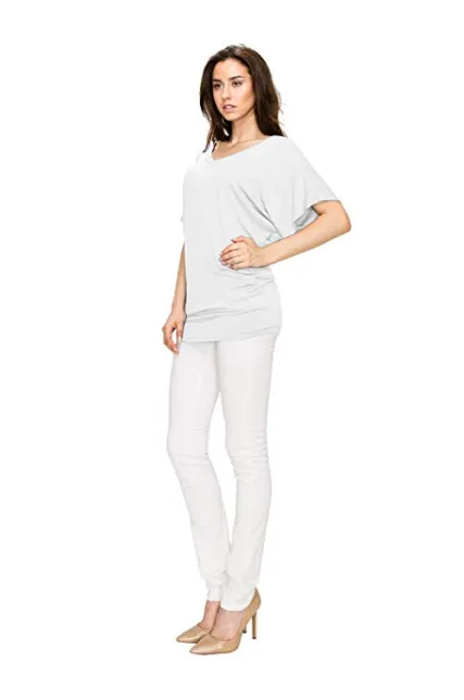 Lock and Love Women's Solid Short Sleeve Boat Crew Neck V Neck Dolman Top XS - 5XL Plus Size Made in USA