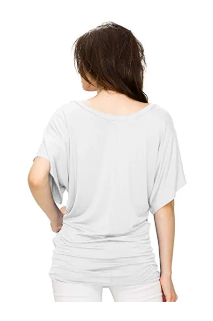 Lock and Love Women's Solid Short Sleeve Boat Crew Neck V Neck Dolman Top XS - 5XL Plus Size Made in USA
