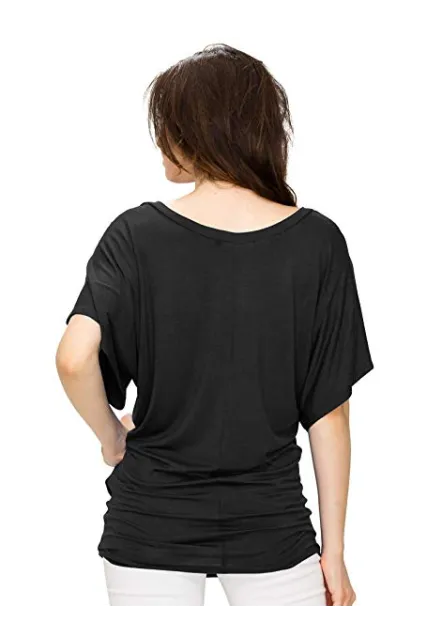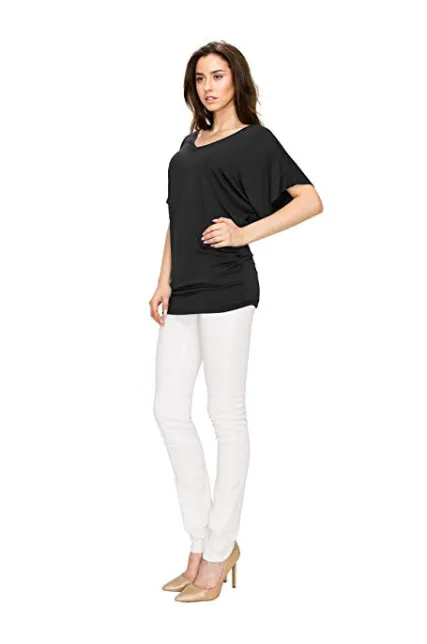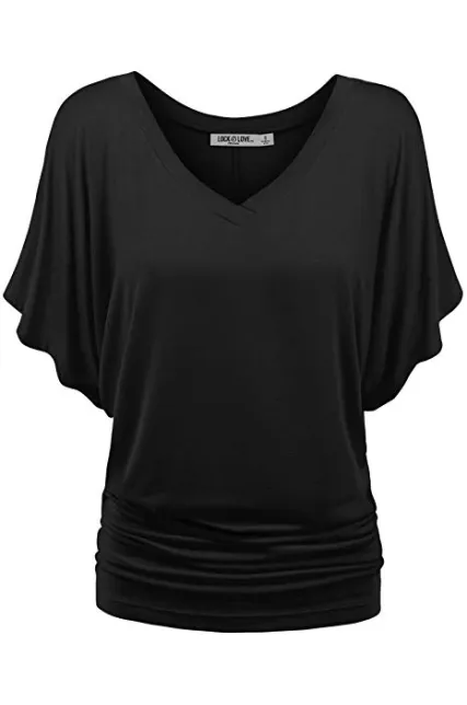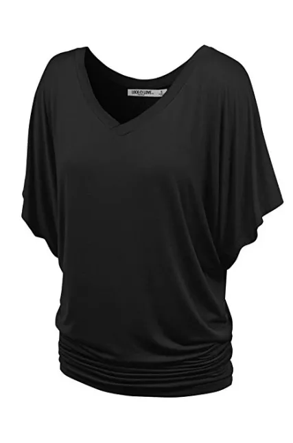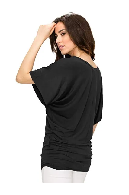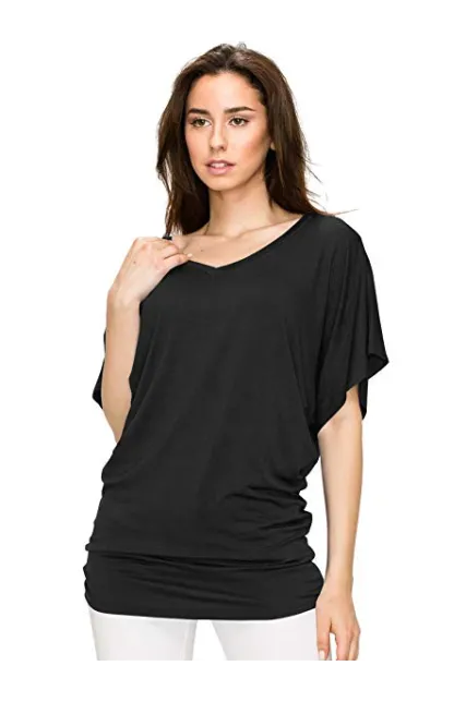 Lock and Love Women's Solid Short Sleeve Boat Crew Neck V Neck Dolman Top XS - 5XL Plus Size Made in USA