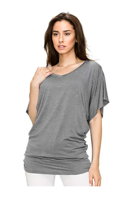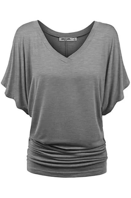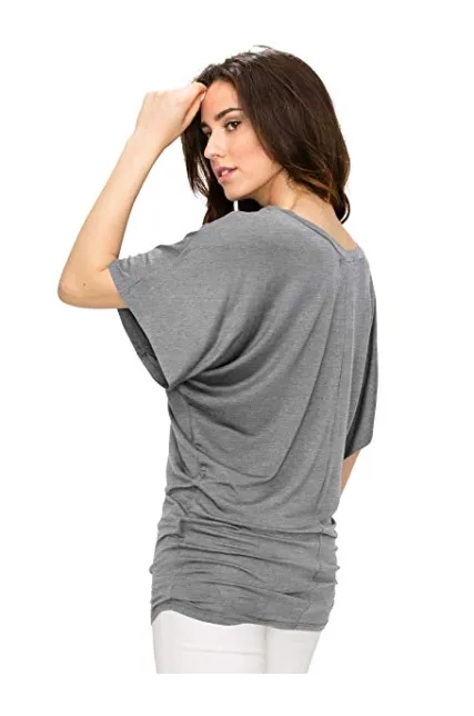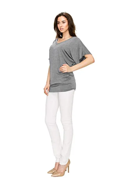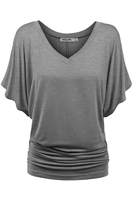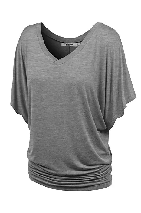 Lock and Love Women's Solid Short Sleeve Boat Crew Neck V Neck Dolman Top XS - 5XL Plus Size Made in USA