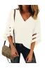 - The casual shirt comes with v neck and lace patchwork design.