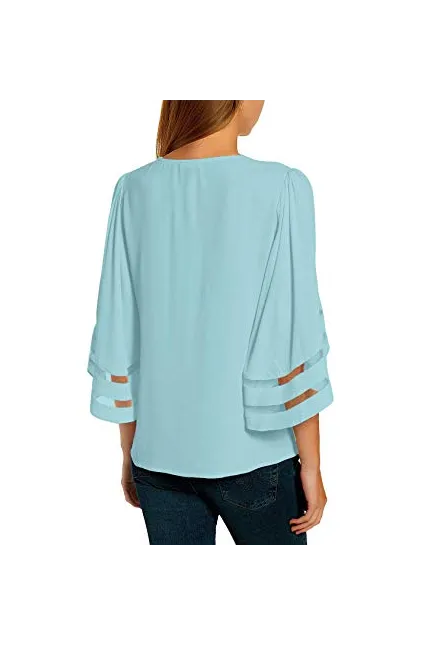 - 3/4 Flare sleeve. Solid color. Summer tops for women.